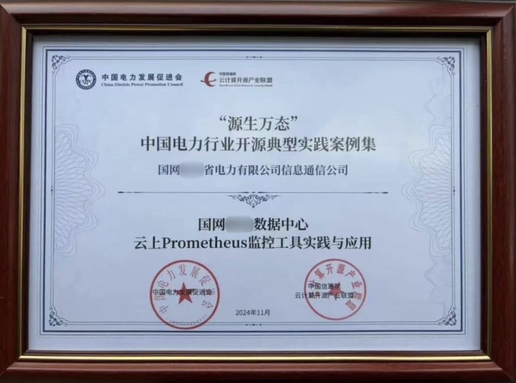 經(jīng)過(guò)專(zhuān)家層層篩選、多方論證,天寬助力電力客戶(hù)創(chuàng)新成果《國(guó)網(wǎng)某地?cái)?shù)據(jù)中心云上Prometheus監(jiān)控工具實(shí)踐與應(yīng)用》在眾多參選案例中脫穎而出,成功入選“源生萬(wàn)態(tài)”中國(guó)電力行業(yè)開(kāi)源典型實(shí)踐案例集。