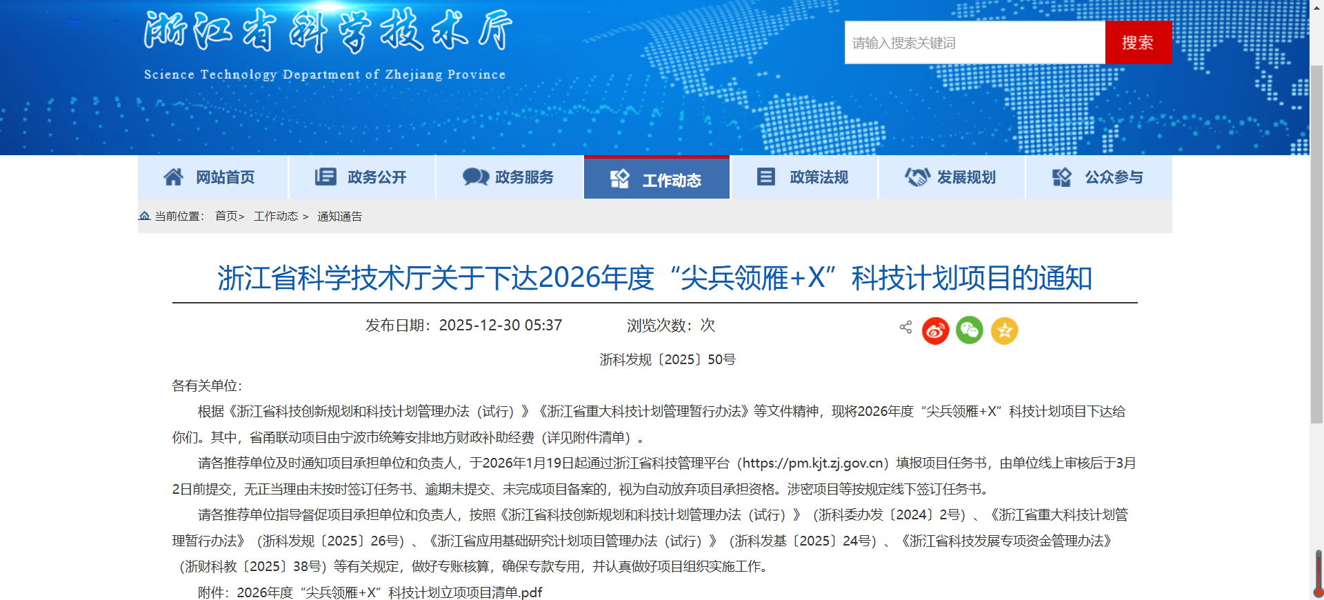 “尖兵”“領(lǐng)雁”研發(fā)攻關(guān)計(jì)劃是浙江省重大科技專項(xiàng),由省級(jí)財(cái)政資金設(shè)立,面向世界科技前沿、面向經(jīng)濟(jì)主戰(zhàn)場、面向國家和浙江重大需求、面向人民生命健康,開展重點(diǎn)技術(shù)領(lǐng)域的前沿科學(xué)問題研究、重大關(guān)鍵核心技術(shù)攻關(guān)、重大社會(huì)公益性研究、重大國際科技合作等研究活動(dòng)的科技計(jì)劃,旨在解決一批關(guān)鍵核心技術(shù)和科技瓶頸問題,推進(jìn)科技高水平自立自強(qiáng)。