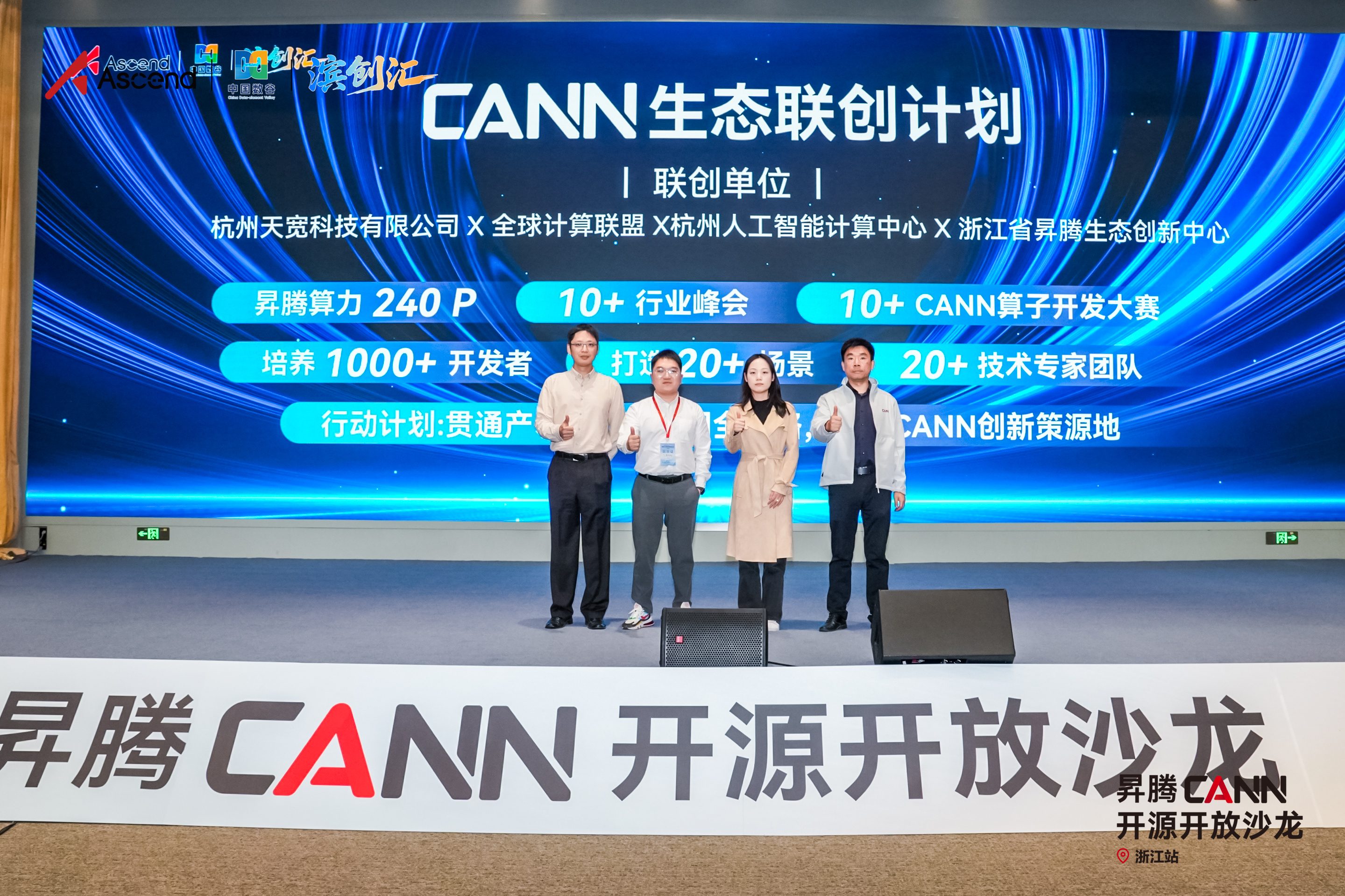 2025年11月14日,AI產(chǎn)業(yè)生態(tài)發(fā)展歷程中迎來(lái)重要里程碑——杭州天寬科技有限公司(下文稱“天寬科技”)在“昇騰CANN開(kāi)源開(kāi)放沙龍·浙江站”上,依托區(qū)品牌活動(dòng)“濱創(chuàng)匯”的集聚效應(yīng),攜手全球計(jì)算聯(lián)盟、浙江省昇騰生態(tài)創(chuàng)新中心、杭州人工智能計(jì)算中心等重量級(jí)伙伴,共同發(fā)布“CANN生態(tài)聯(lián)創(chuàng)計(jì)劃”。這一開(kāi)創(chuàng)性舉措標(biāo)志著CANN開(kāi)源生態(tài)首次以體系化、平臺(tái)化的模式落地浙江,憑借其在昇騰AI生態(tài)中的技術(shù)和整合能力,深度主導(dǎo)多個(gè)關(guān)鍵環(huán)節(jié),成功將本次技術(shù)沙龍升維為引領(lǐng)區(qū)域AI產(chǎn)業(yè)發(fā)展的戰(zhàn)略發(fā)布平臺(tái)。